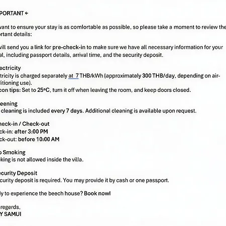 Gasten kunnen maaltijden bereiden in een complete keuken of dineren in een eethoek. U kunt ook gebruikmaken van een waterkoker, een koelkast en een oven om uw eigen maaltijd te bereiden. Sawadee Thai Cuisine met de Thaise keuken ligt op een korte afstand van de accommodatie. De dichtstbijzijnde luchthaven is Ko Samui, op 5 km van de villa.